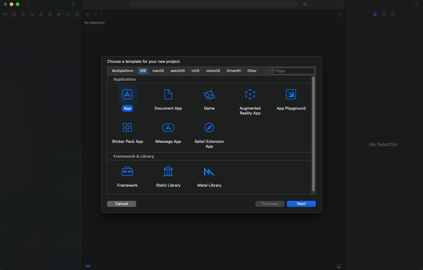 Once its installed, create a new project and make sure to select the App template when creating: