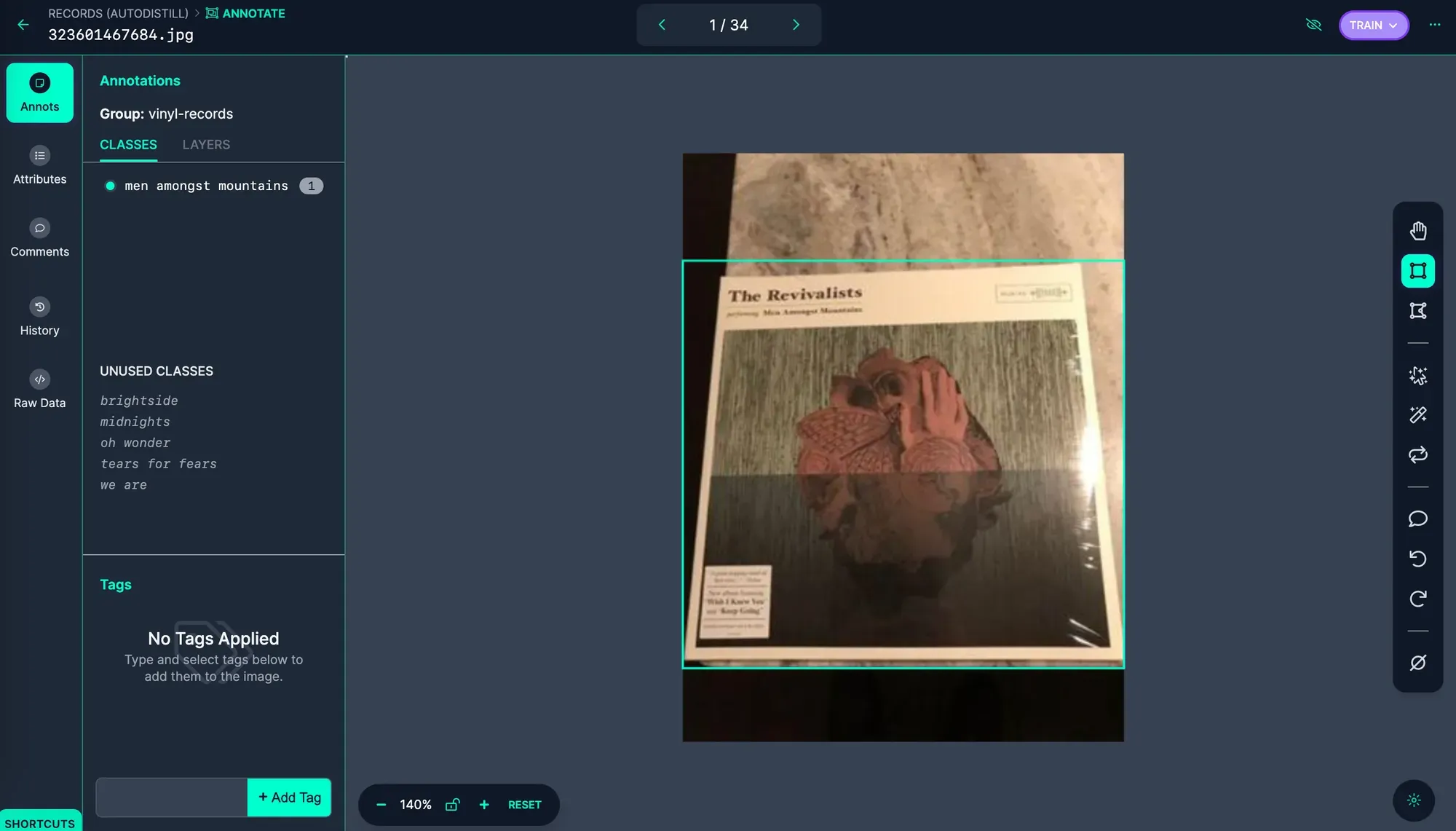 Next, click “Annotate” in the sidebar. Click on an image to start reviewing all the annotations. Here is an example annotation from the image:
