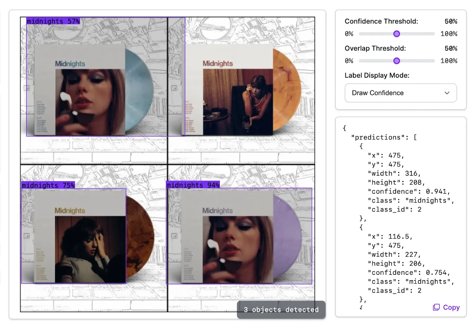 Here is how the vinyl record model we trained earlier performs on an example image:
