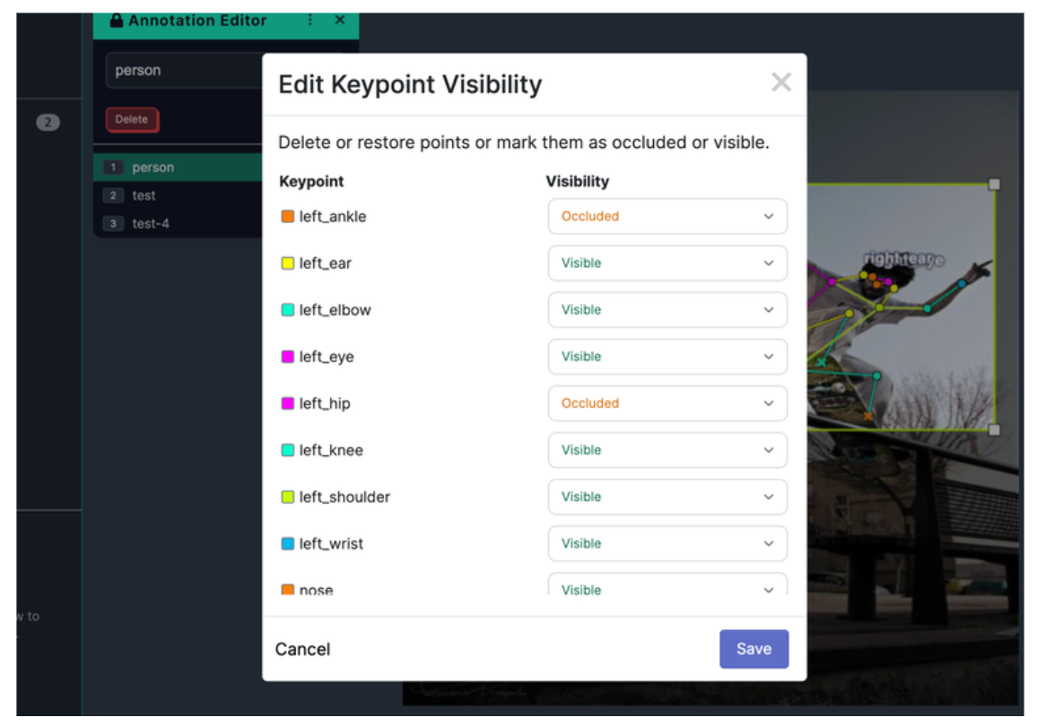 Pose and keypoint models help answer “How are parts and people aligned?” Instead of bounding boxes or masks, they predict specific landmarks—such as human joints or fiducials on equipment. These landmarks make it possible to measure posture, ensure assembly alignment, or verify PPE usage. From workplace safety to robotic assembly, pose estimation provides fine-grained insights about how things are positioned in space.