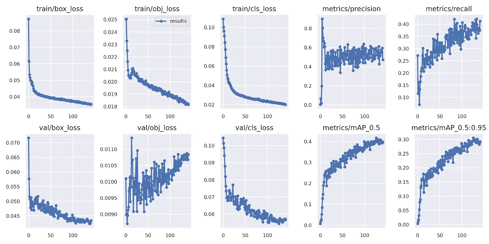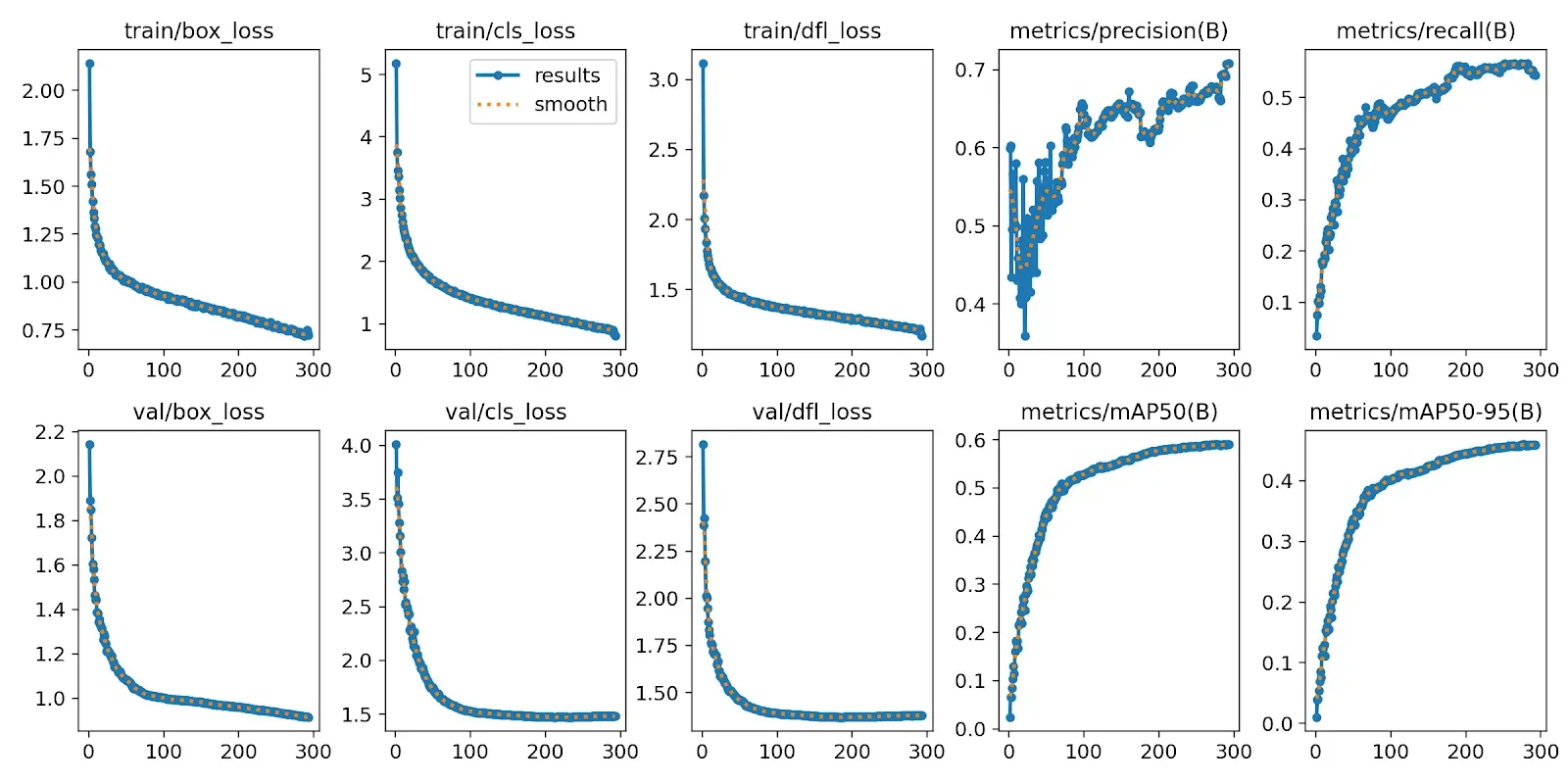 The results show that augmentations impact deep learning model performance significantly. We can see the training graphs for both models below, and the second model shows a significant improvement in learning. Additionally, the first model was trained using Roboflow 2.0 Object Detection (Fast), whereas the second model was trained using Roboflow 3.0 Object Detection (Fast). This could have also been a reason for the performance improvement.