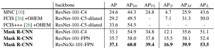 The COCO 2015 and 2016 segmentation challenges were won by the MNC and FCIS models, respectively. Surprisingly, Mask R-CNN achieved better results than the more intricate FCIS+++, which incorporates multi-scale training/testing, horizontal flip testing, and OHEM. It's noteworthy that all the entries represent outcomes from individual models.