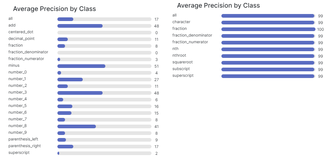 The first attempt for a dataset entailed taking screenshots from a math textbook and using Roboflow Annotate to manually label pictures. Despite best efforts, this resulted in labeling 50 images across the span of a week, which yielded disappointing results of a 27.6% mAP.