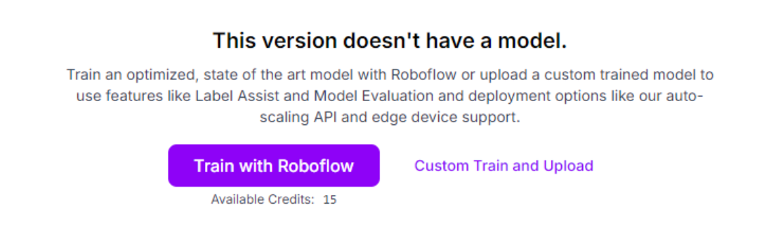 Once the dataset version is generated, you can use the Roboflow auto training option to train the most accurate computer vision model. To train, first click the “Train with Roboflow” button.