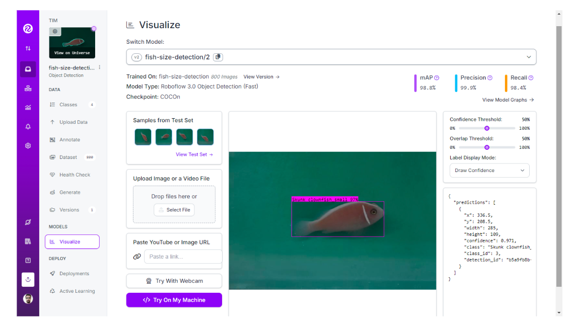 In this project, we will use the object detection approach, which can run in close to real time. We will determine fish size based on its visual appearance.