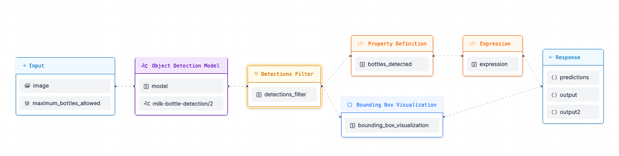 Next, our Workflow selects the predictions and saves them in a property called bottles_detected. This property is then read by an expression block.