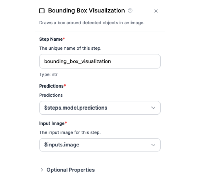 To visualize model predictions, we use a Bounding Box Visualization block. This block reads predictions from a model and plots the corresponding bounding boxes on the input image.