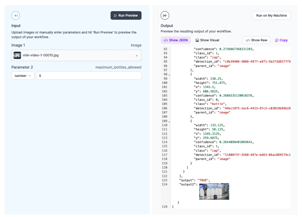 To run a preview, first drag and drop an image into the image input field. Then, set the maximum number of bottles allowed. For this demo, let’s say 5 bottles are allowed in view at a given time.