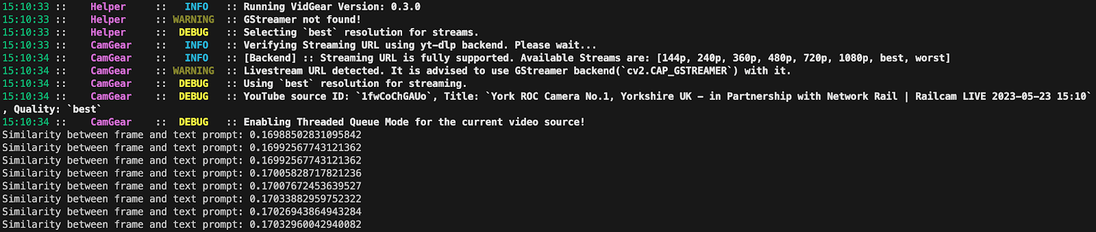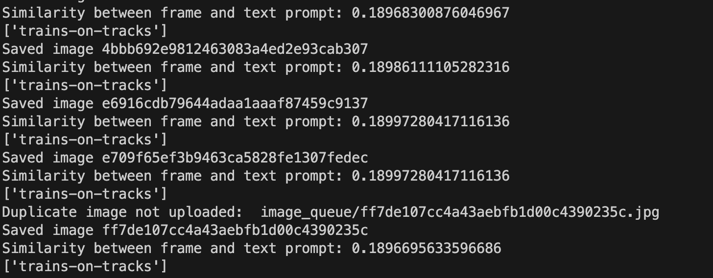 The CLIP_TEXT_PROMPT_THRESHOLD specifies how similar the image in the camera needs to be to the text prompt before an image is sent to Roboflow. We recommend running the script without this flag and monitoring the numbers reported in the console to see what similarity makes sense.