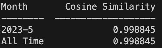 Let’s run the drift.py script with the --INCREMENT=month flag. The script returns the following: