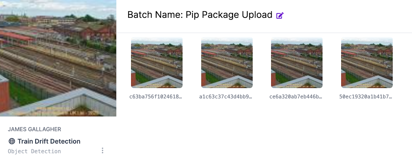 python3 drift.py --ROBOFLOW_KEY="" --ROBOFLOW_PROJECT="train-detection" --ROBOFLOW_WORKSPACE="workspace" --DRIFT_PROJECT="train-drift-detection --INCREMENT=monthThis script accepts the two projects with which we have been working: the main project on which we will train models, and the drift project that stores data gathered by Roboflow Collect.