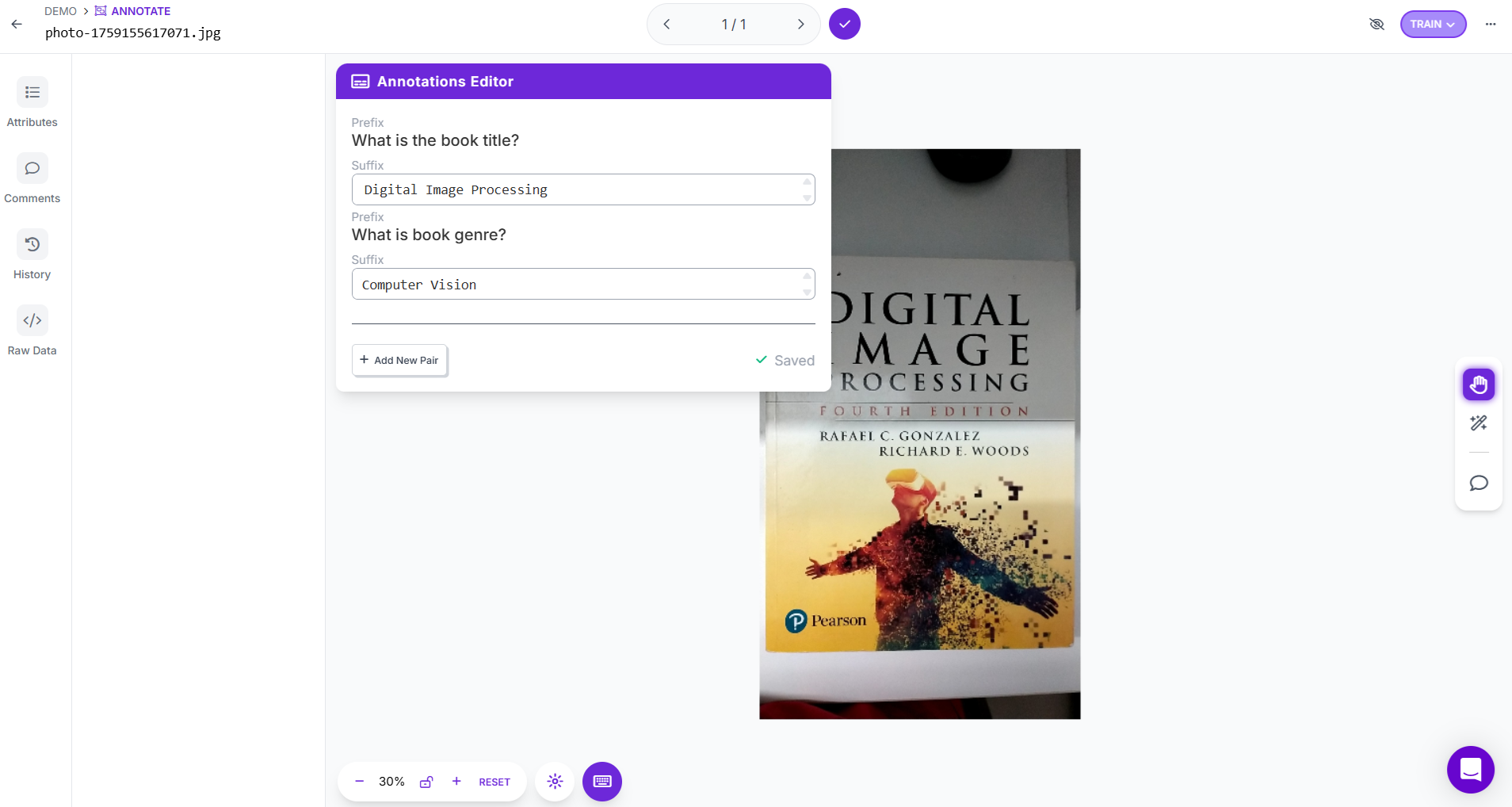 Save your responses they are stored as pairs linking the image and text.