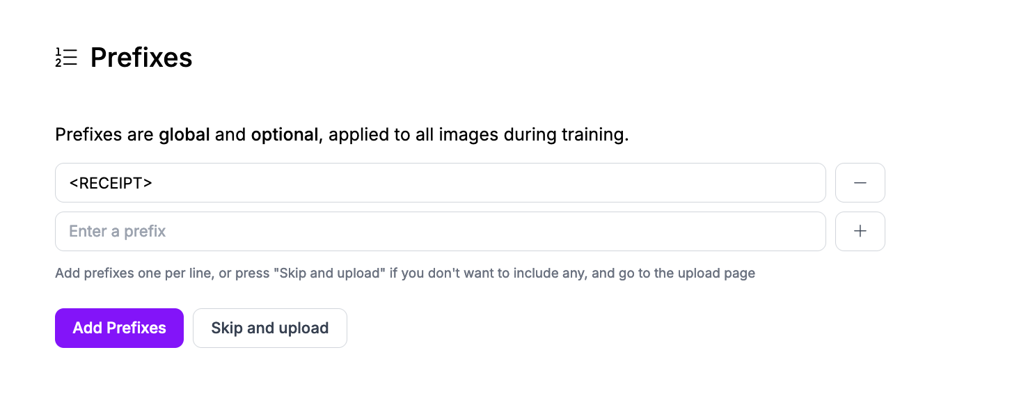 We could add multiple prefixes for different features in the receipt that we want to identify, like total, subtotal, and tax. For this guide, we'll stick with one prefix.