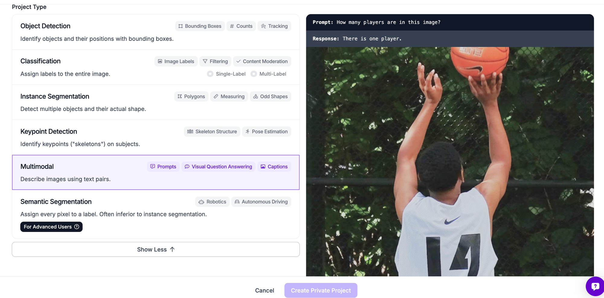 Set a name for your project. When asked to select a project type, choose “Multimodal”. This refers to the image-text pairs commonly used in training multimodal models.