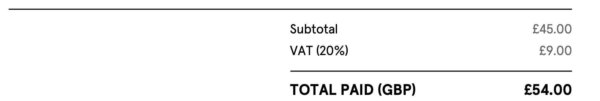 When asked "what is the invoice cost after tax?", the model returns "54". When asked "what is the invoice cost before tax?", the model returns "45.00". In both cases, the model is correct.