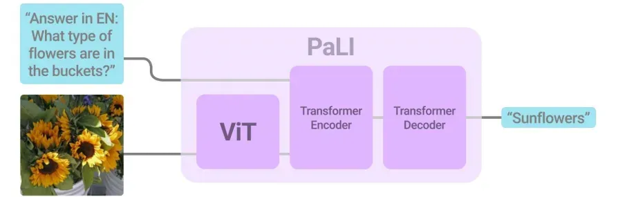 One of the most successful models for VQA is the PaLI (Pathways Language and Image model) model developed by Google Research in 2022. PaLI architecture uses an encoder-decoder Transformer model, with a large-capacity ViT component for image processing.