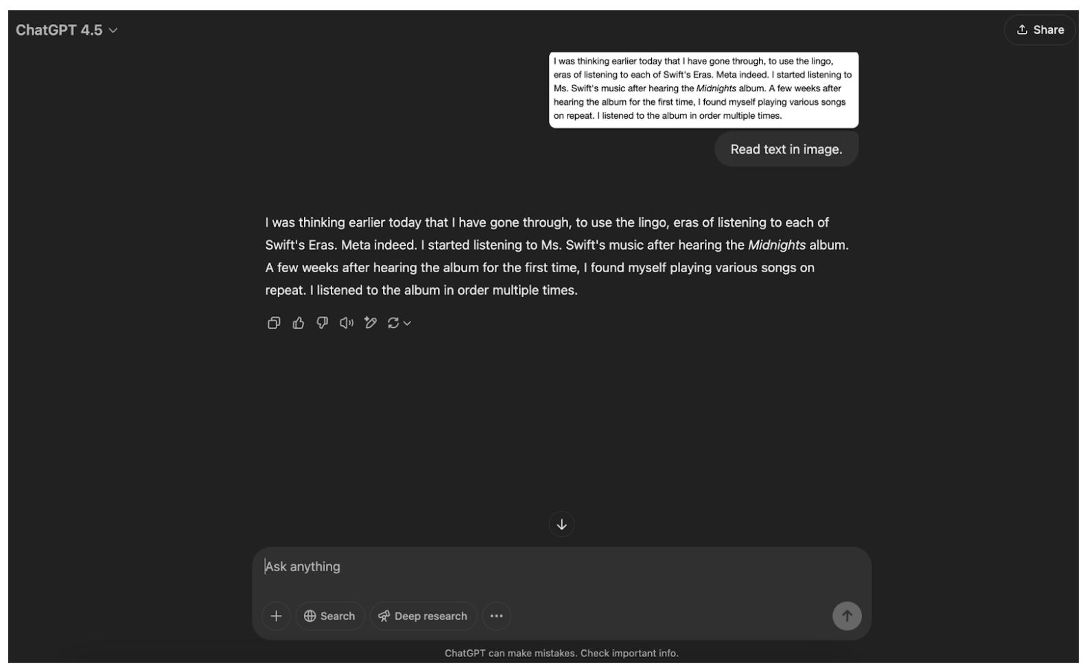 Here is an example of GPT-4.5, a state-of-the-art model, reading the text in an image: