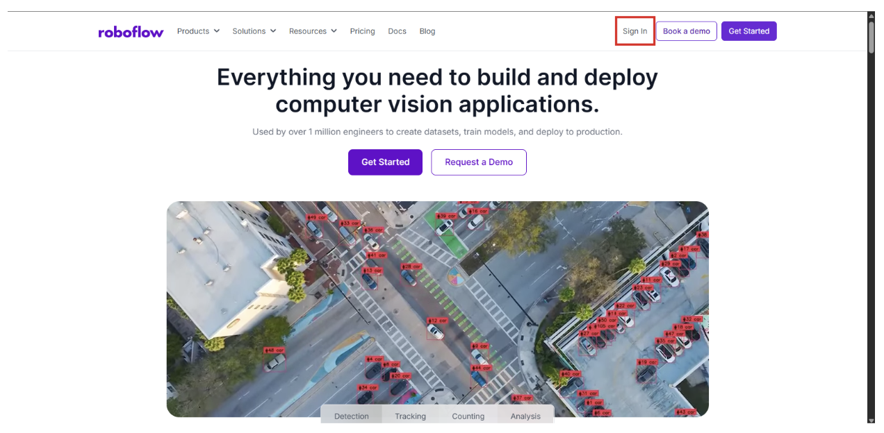 - Navigate to Roboflow and sign in. If you don’t have an account, sign up for free; it takes just a minute.
