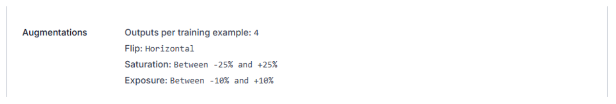 - Exposure: Between -10% and +10% (simulates diverse lighting conditions). These augmentations help the model generalize, reducing overfitting.