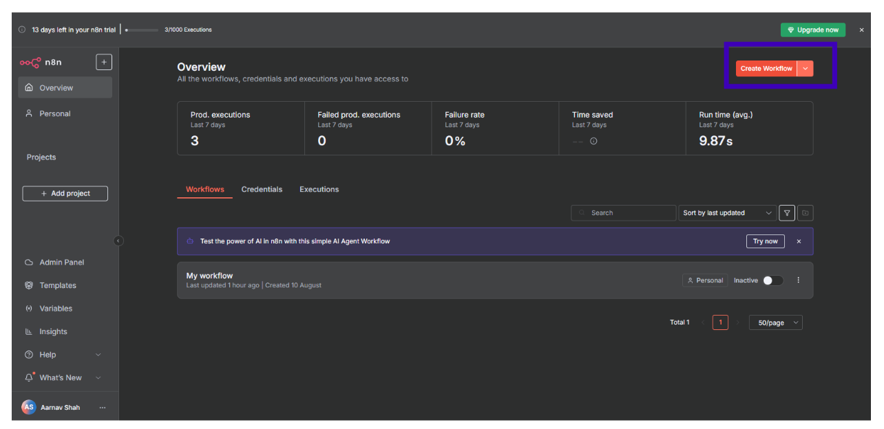 - Click “Create Workflow” and name it (e.g., “Human Detection Workflow”).