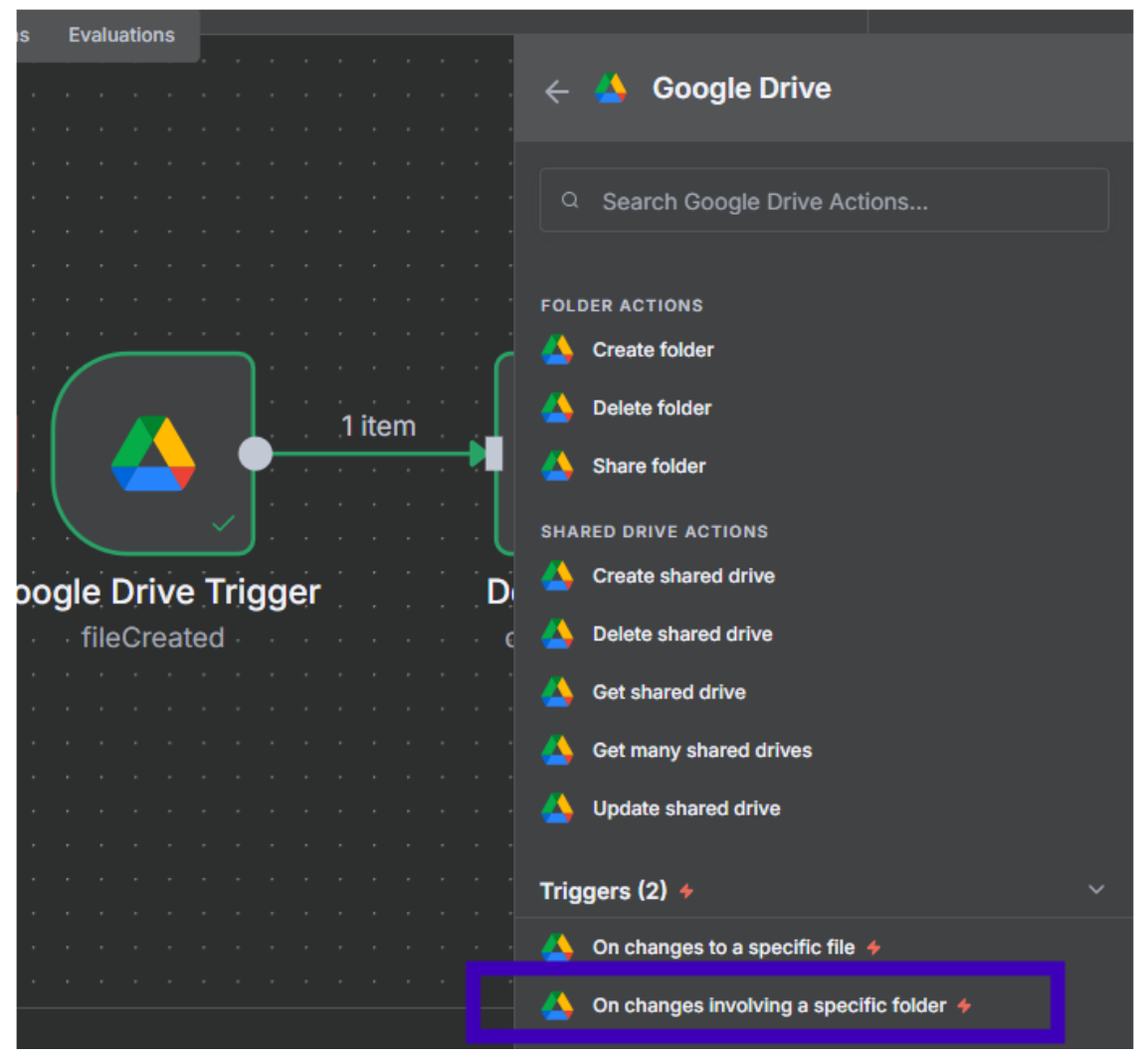 - In the Google Drive Trigger node, confirm poll time (e.g., every minute) and save.