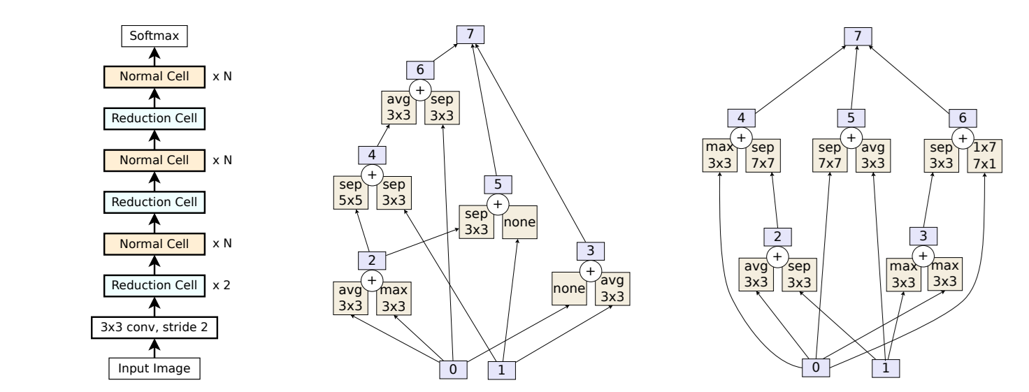 Each cell is a DAG with nodes representing operations (e.g., convolutions, pooling) and combination steps (addition or concatenation). By stacking normal and reduction cells, NASNet produces the final architecture.