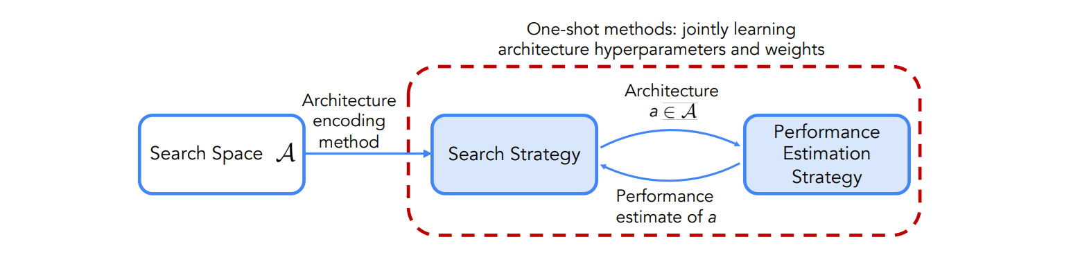 Performance estimation is how you measure whether a configuration is good. You can train the model fully or partially, or reuse weights to save time. Specifically, performance estimation strategies speed up evaluation using proxy tasks (e.g., training on reduced datasets or fewer epochs), replacement or substitute models that predict a model’s performance from its structure, or weight‑sharing/one‑shot approaches that train a large supernetwork containing all possible operations and then evaluate different sub‑architectures using shared weights.