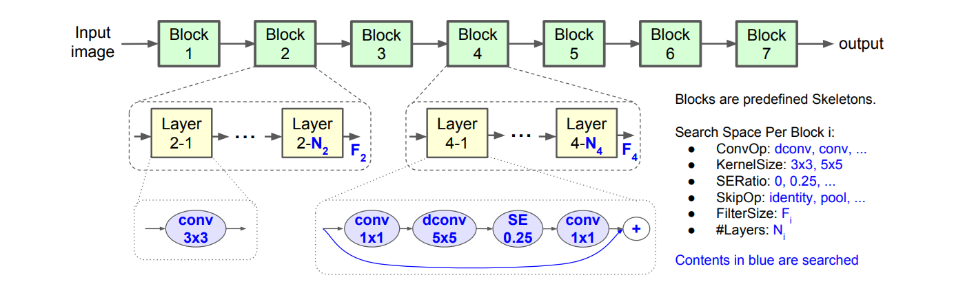 - In another variant, the topology and operations remain fixed, but macro-level hyperparameters such as network depth, width, and spatial resolution downsampling points are optimized, such as scaling strategy in EfficientNet.