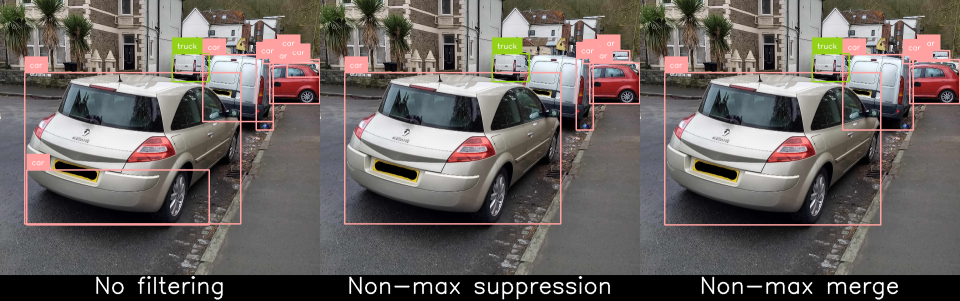 As you can see, the methods often produce similar results. Which should you pick for your use case? The quick answer is to opt for non-max suppression as the default but do a few tests for non-max merge for your use case.