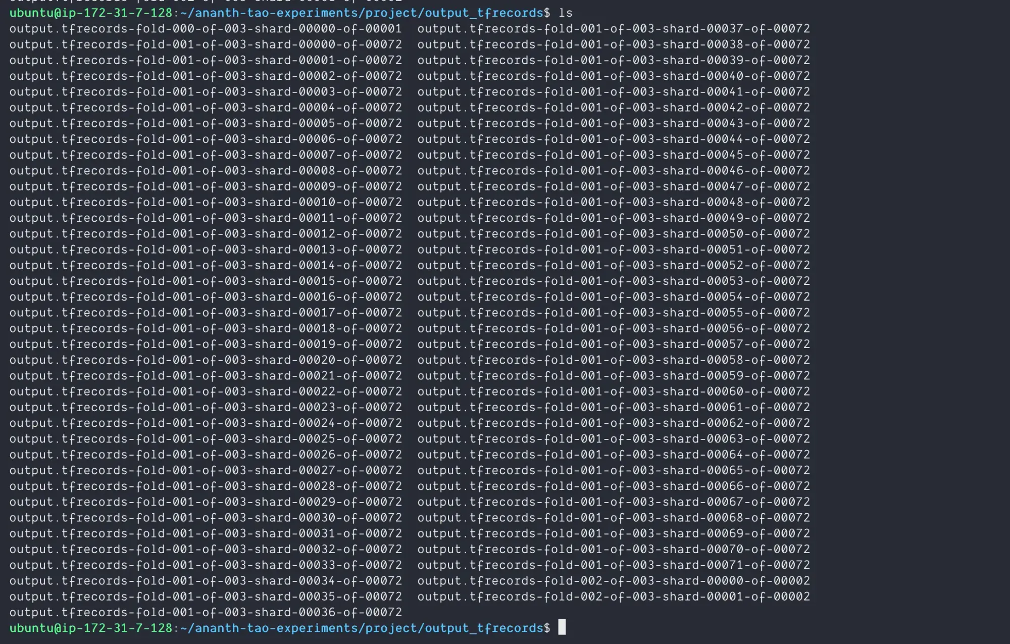 !mv project/output.tfrecords* project/output_tfrecordsNow, inside output_tfrecords, I can see the new TFRecords that were generated: