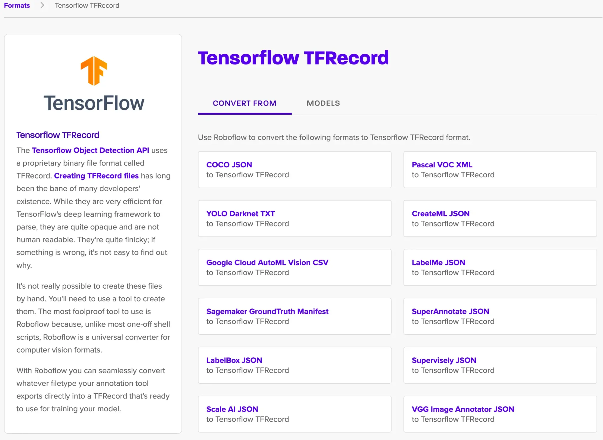 Roboflow offers a simple drag-and-drop format conversion tool for free if your data is in another format and needs to be convert to TFRecords.