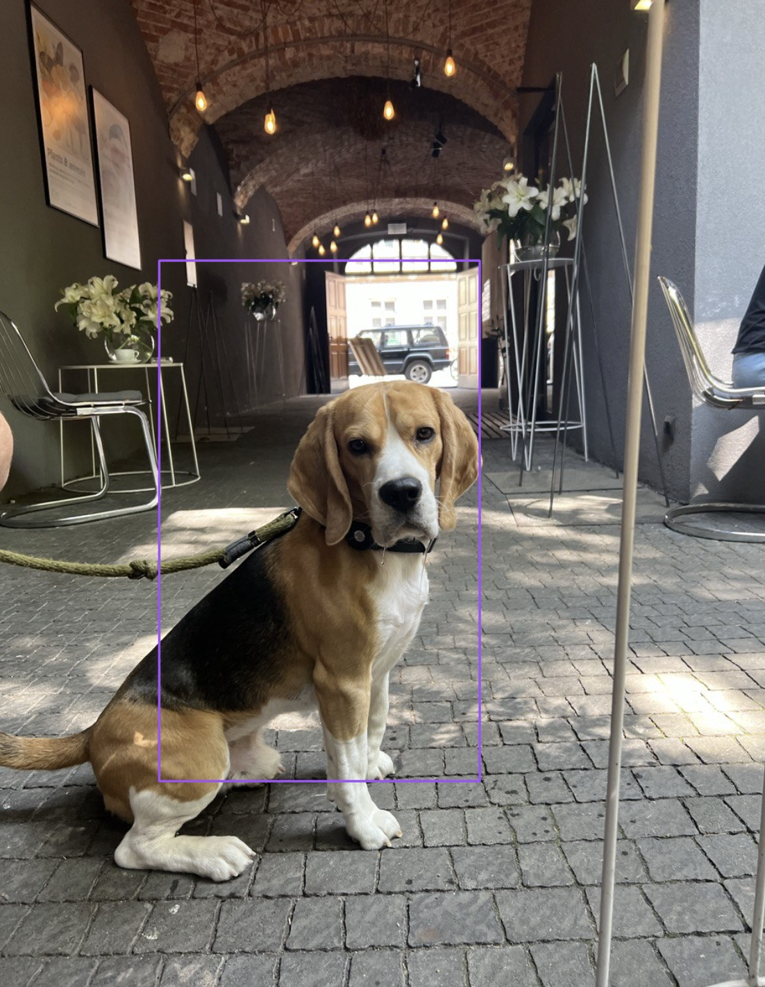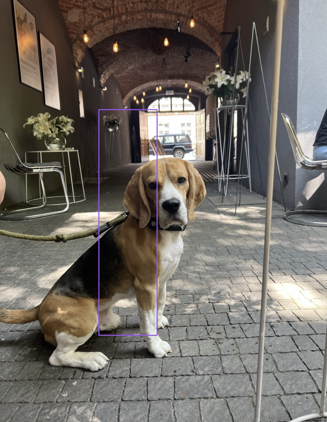 The bounding box encapsulates more of the dog but is still not placed correctly. This demonstrates the limitations of O3 for object detection.