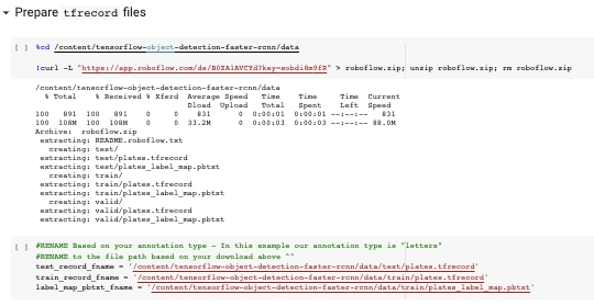 Next, we'll download our dataset with the curl link from above, which provides our data in the TFRecord format. In the next section of code, we define variables that point to these data files - be sure to redefine these fields based on your data download.