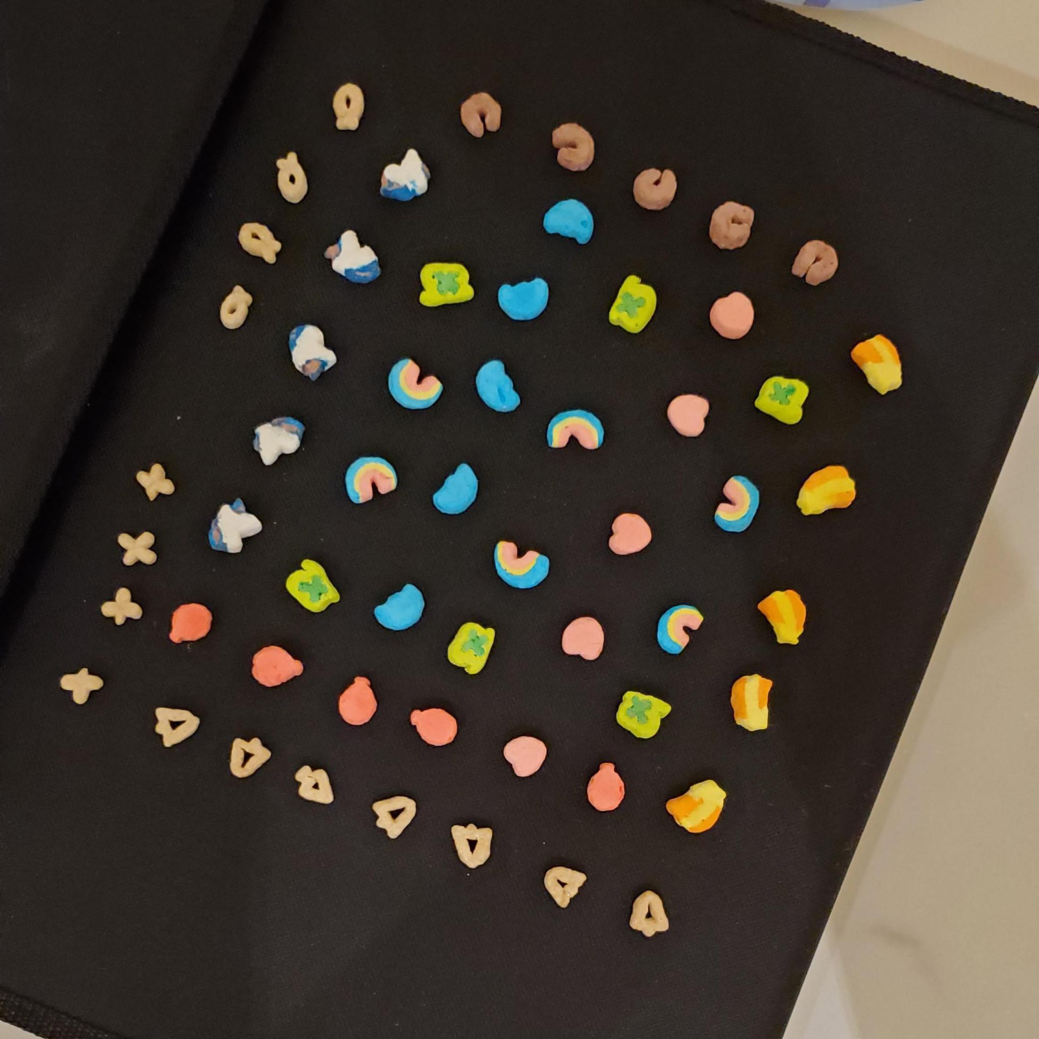 Many are unaware that each of these marbits each have names that describe their shape: unicorn, clover, balloon, heart, horseshoe, rainbow, star, and moon. We are going to build a dataset that has all of these marbits labeled, as well as including unlabeled images of the cereal pieces themselves.