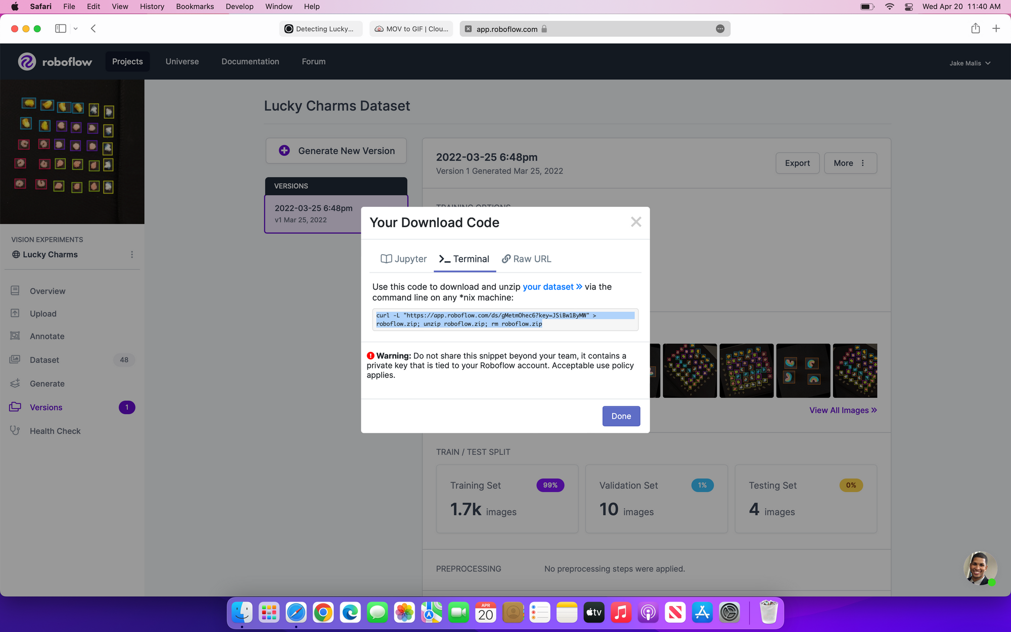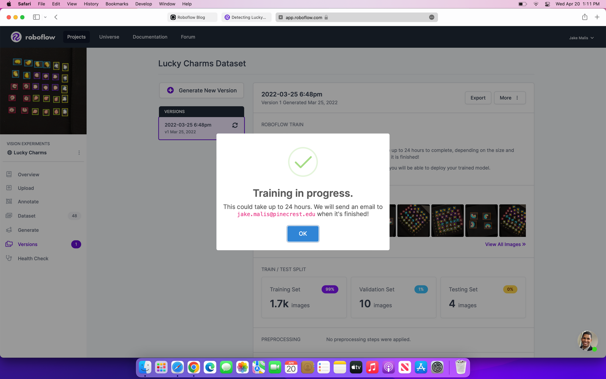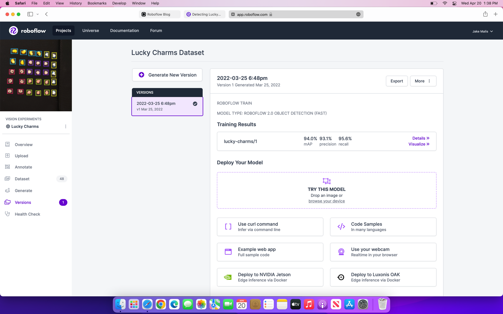 You can following along with this Google Colab Notebook to train your own lucky charms detection model (or use mine).
