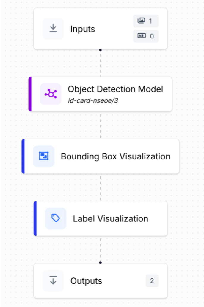 Step 2 (Workflow): Input → id-card-nseo/3 detector → Bounding-Box Viz → Output.