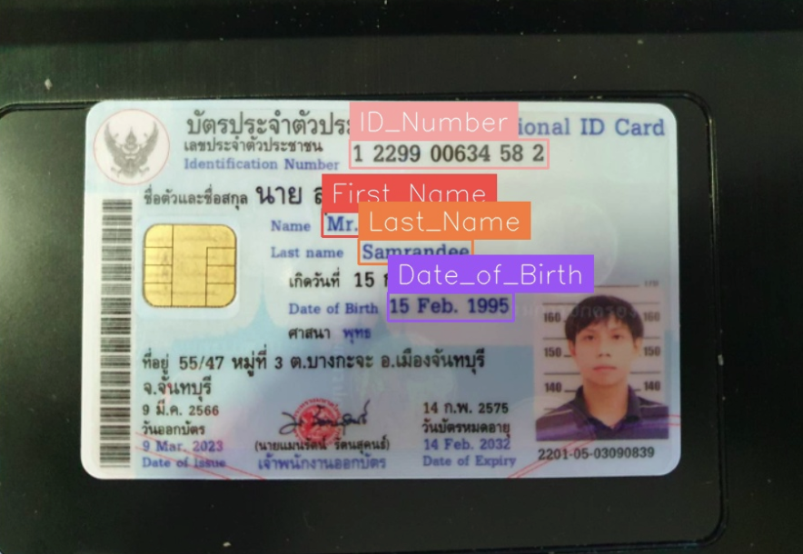 This involves detecting and extracting fields such as name, date of birth, ID number, and more from the image.