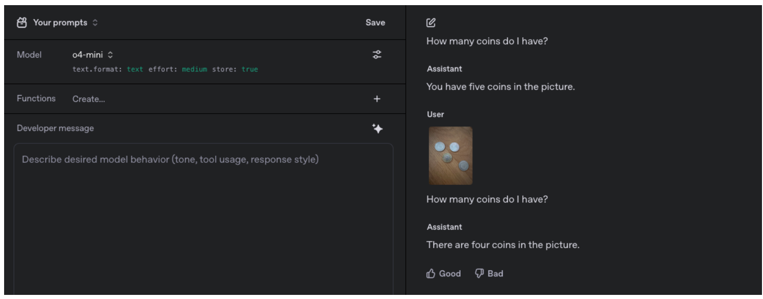 o3 and o4-mini are the latest reasoning models released by OpenAI. The models, available via the OpenAI API and Playground as of April 16th, 2025, allow you to ask questions and upload images as context. The model will then use its reasoning abilities to return an answer.