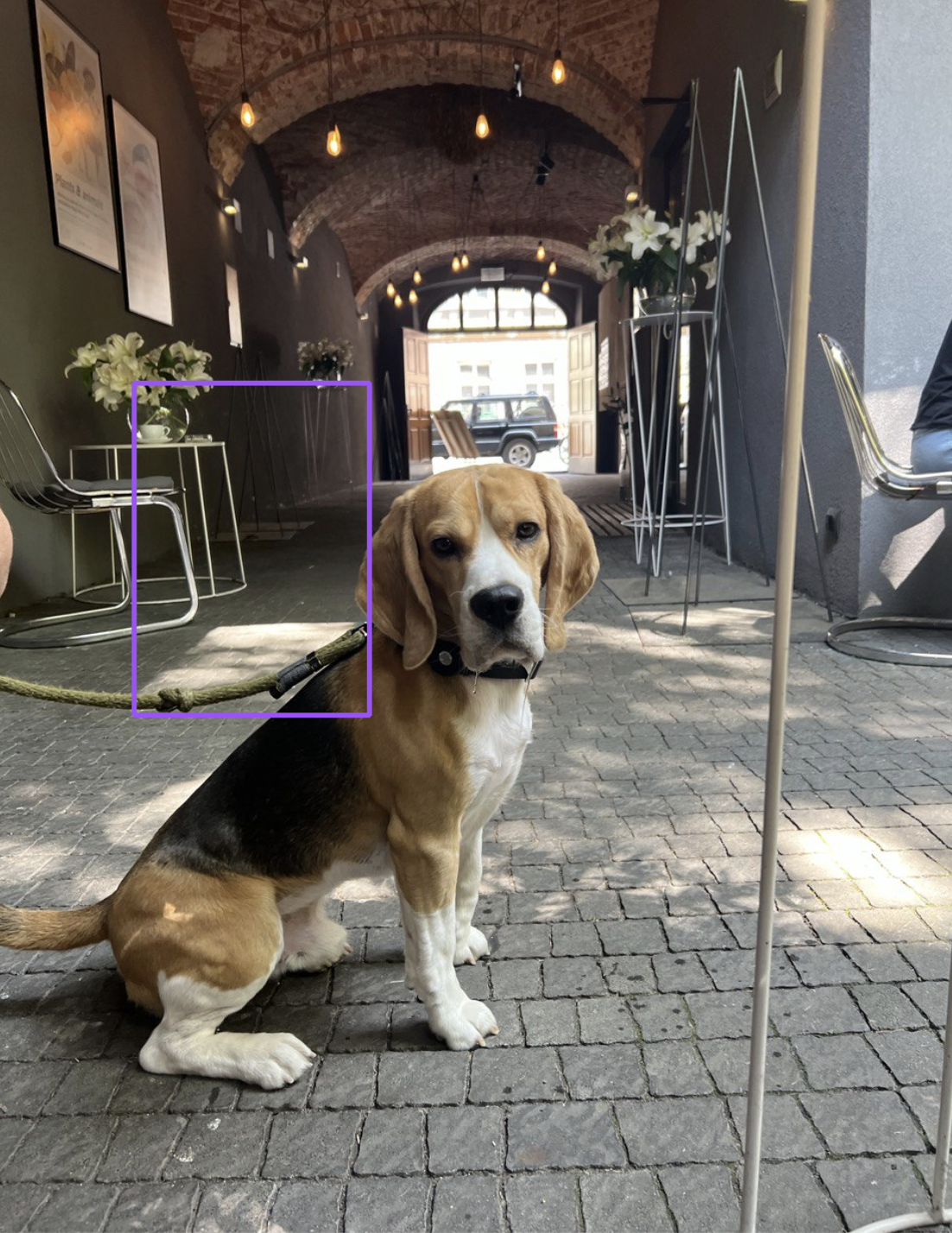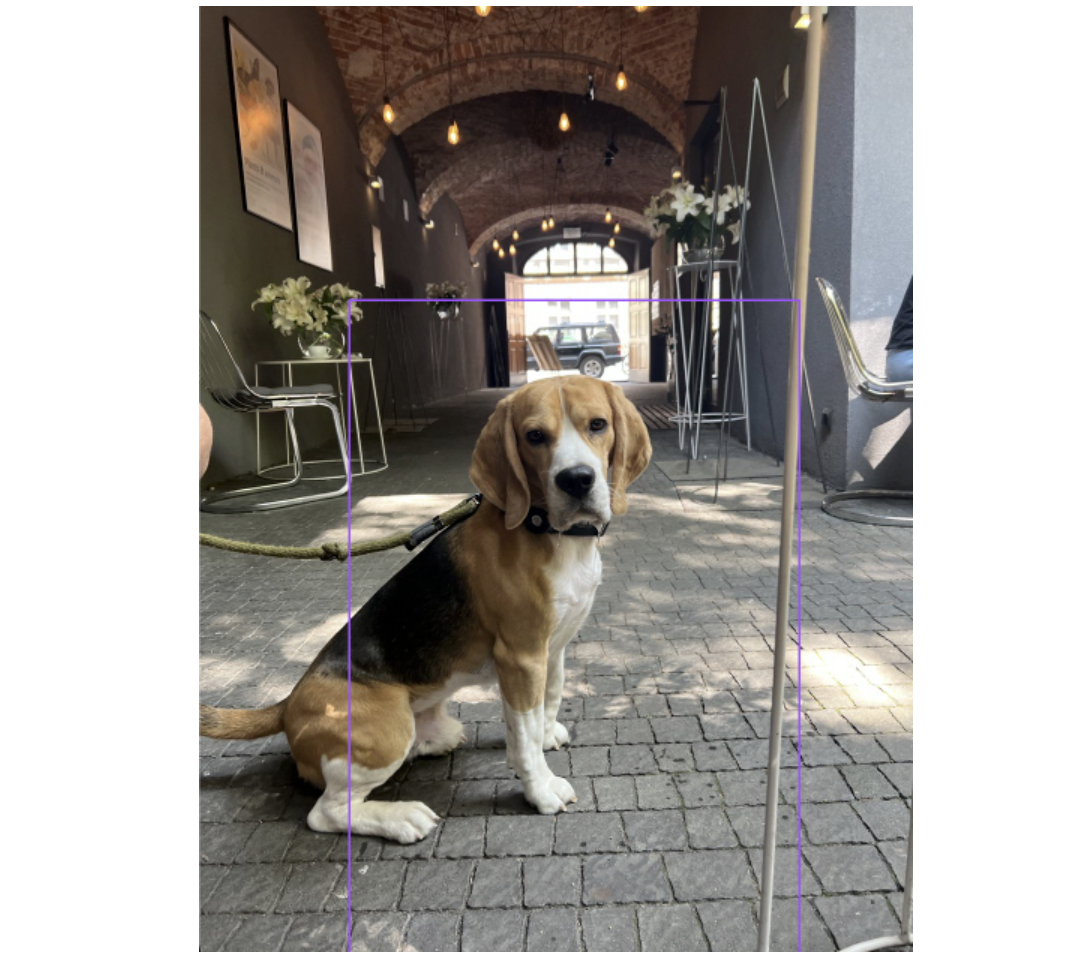 We are counting this as a fail because, while the dog is captured, the bounding box contains a lot of background and misses part of the dog.