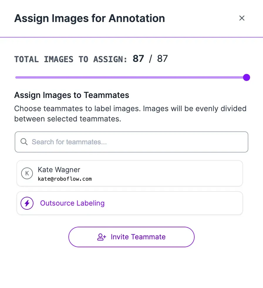 To get started, select the "Outsourced Labeling" button in your Roboflow workspace, located under "Assign Images" in your annotations tab.