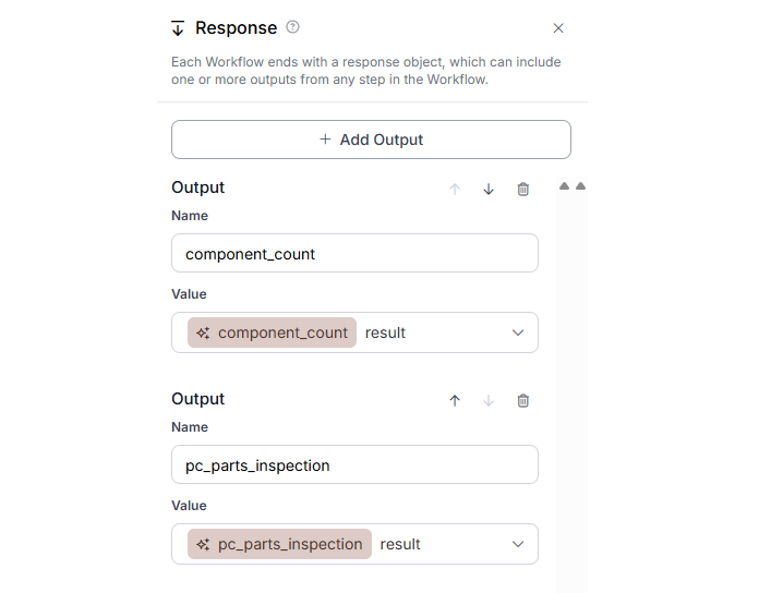 This verification_list is a crucial input in the part inspection workflow as it defines the expected number of each component that should be present on the PCB. By passing this structured input to the custom Python block, the system can compare the actual detected counts from the object detection model against the expected values. This comparison allows the workflow to automatically verify whether the PCB is correctly assembled.