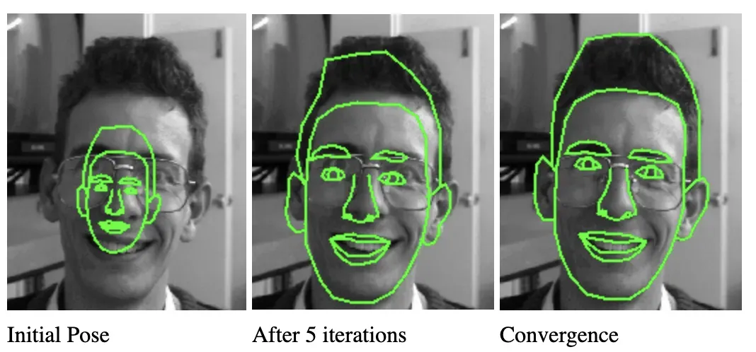 ASM is a statistical model that combines shape and appearance information to estimate the pose or shape of an object in an image. To estimate the pose, the ASM algorithm starts with an initial guess of the object's shape in the image. It then adjusts the shape to find the best match between the model and the object in the image. During this adjustment process, the algorithm considers both the statistical shape model and the information from the image. It iteratively modifies the shape by analyzing the image's features.