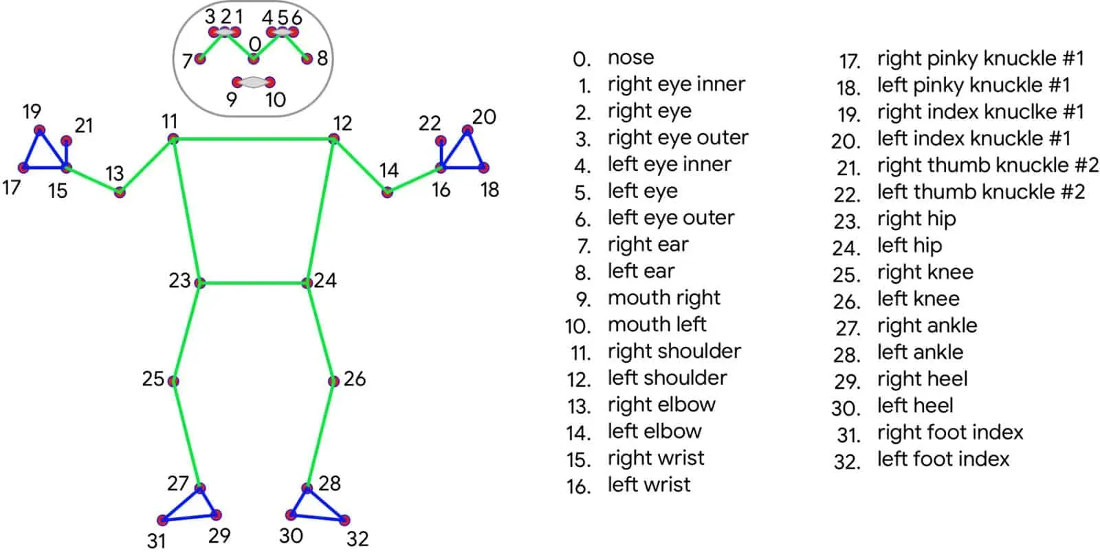 MediaPipe Pose is a framework specifically designed for single-person pose estimation. It uses a series of models. The first model detects the presence of human bodies within an image frame, and the second model locates key points on the bodies. The framework operates in two stages, namely detection and tracking. The detection stage is not performed on every frame, allowing the framework to perform inference more rapidly and efficiently.