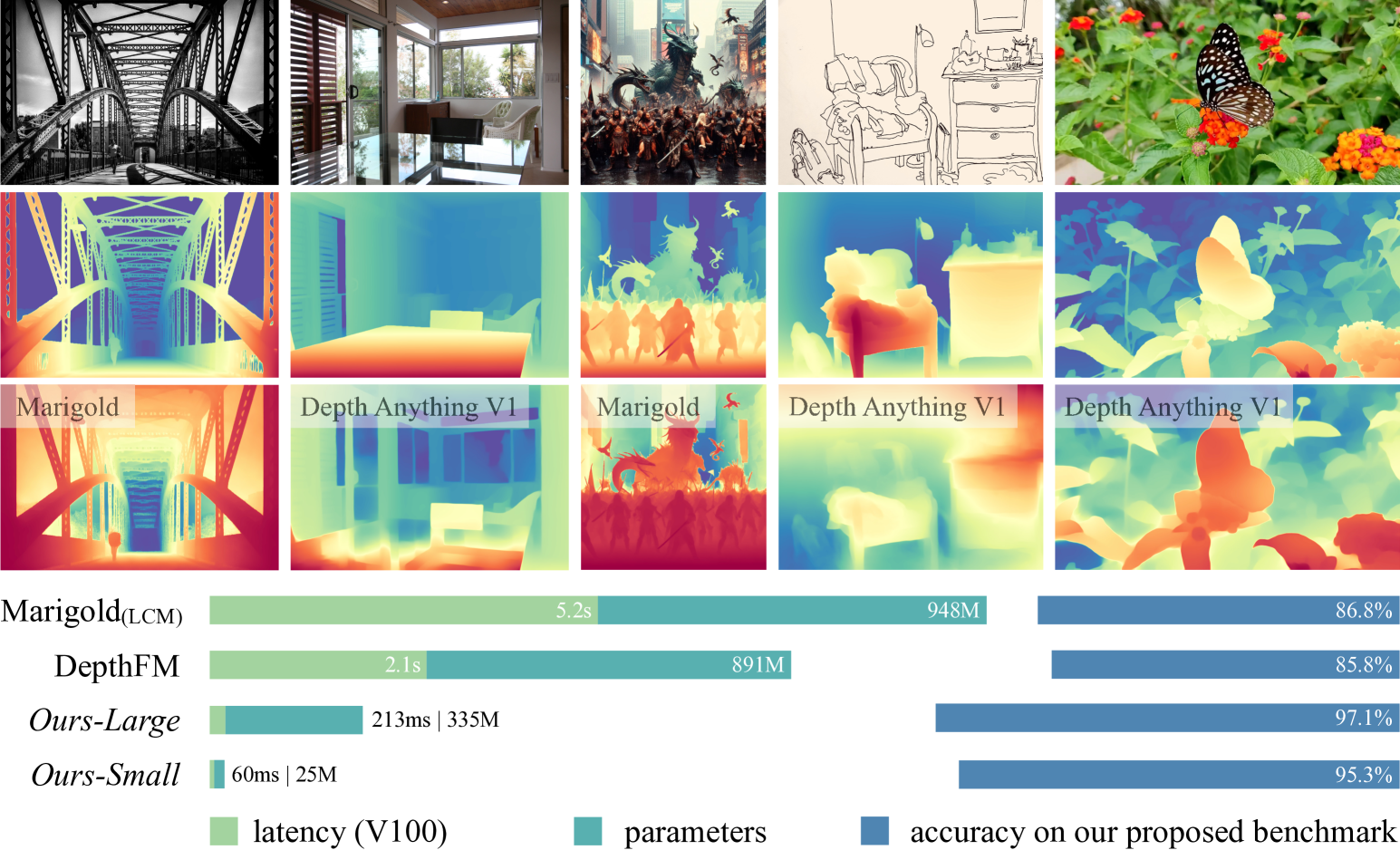 - Variants: DepthAnything V2 has four variants Depth-Anything-V2-Small (24.8M), Depth-Anything-V2-Base (97.5M), Depth-Anything-V2-Large (335.3M). The variant Depth-Anything-V2-Giant (1.3B) is not released yet.