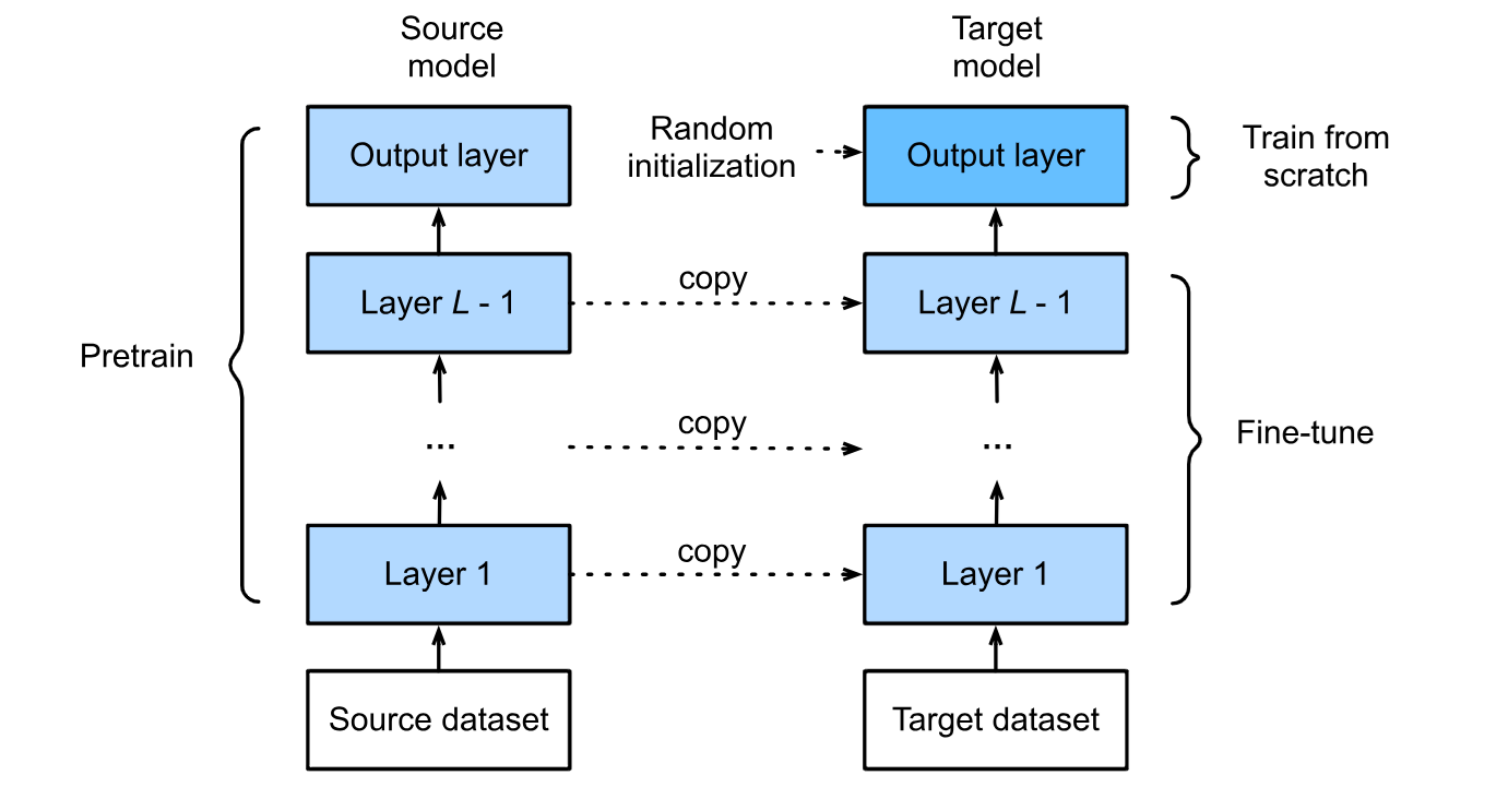- Fine-tuning happens after pre-training. The model is then trained further on a smaller, task-specific dataset so it can adapt those general features to the new problem. In other words, pre-training teaches the “basics,” and fine-tuning specializes the model for the exact task you care about.
