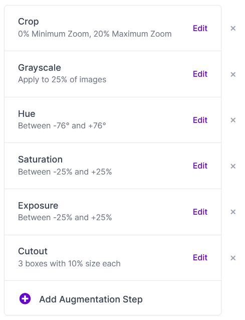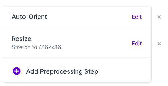 Fortunately, Roboflow has automatic preprocessing tools! Roboflow offers a wide variety of preprocessing settings ranging from resizing to applying a grayscale. For this tutorial we will apply the following preprocessing steps: