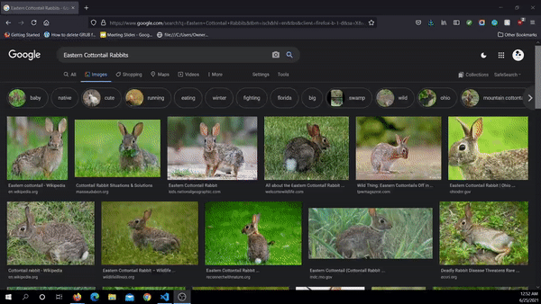 To collect data, we will be using CC4.0 Licensed pictures from Google Images. To ensure that your model will detect the correct type of rabbit in your region, you will want to research the types of rabbits that appear in your area. For example, in North Texas where I live, there are many Eastern Cottontail Rabbits and therefore I will want to gather pictures for Eastern Cottontail Rabbits:
