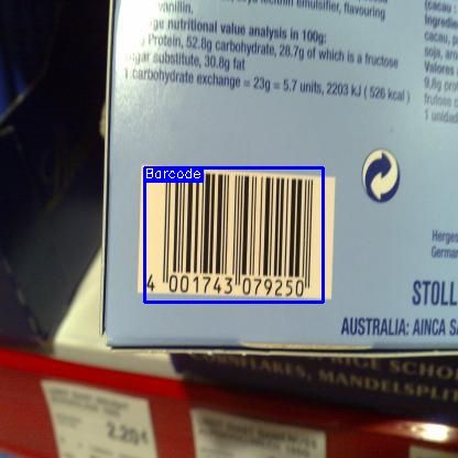 The model successfully identified the barcode, denoted by the blue box in the image above. Within the box are the numbers associated with the code. We can pass these through an OCR model later to read the values.