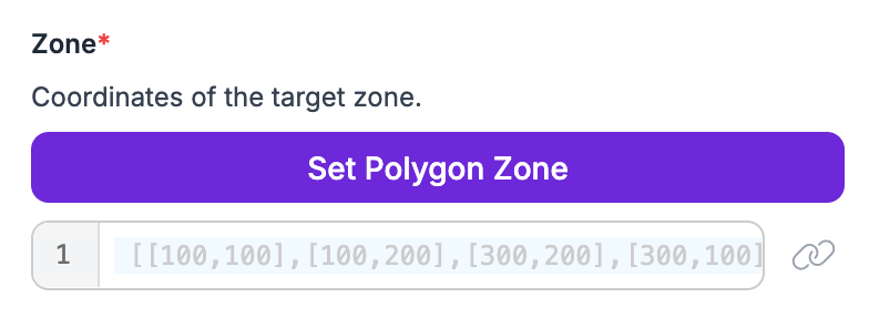 A configuration panel will open on the right side of your screen from which you can configure your red zone. Click the "Set Polygon Zone" button in the configuration panel: