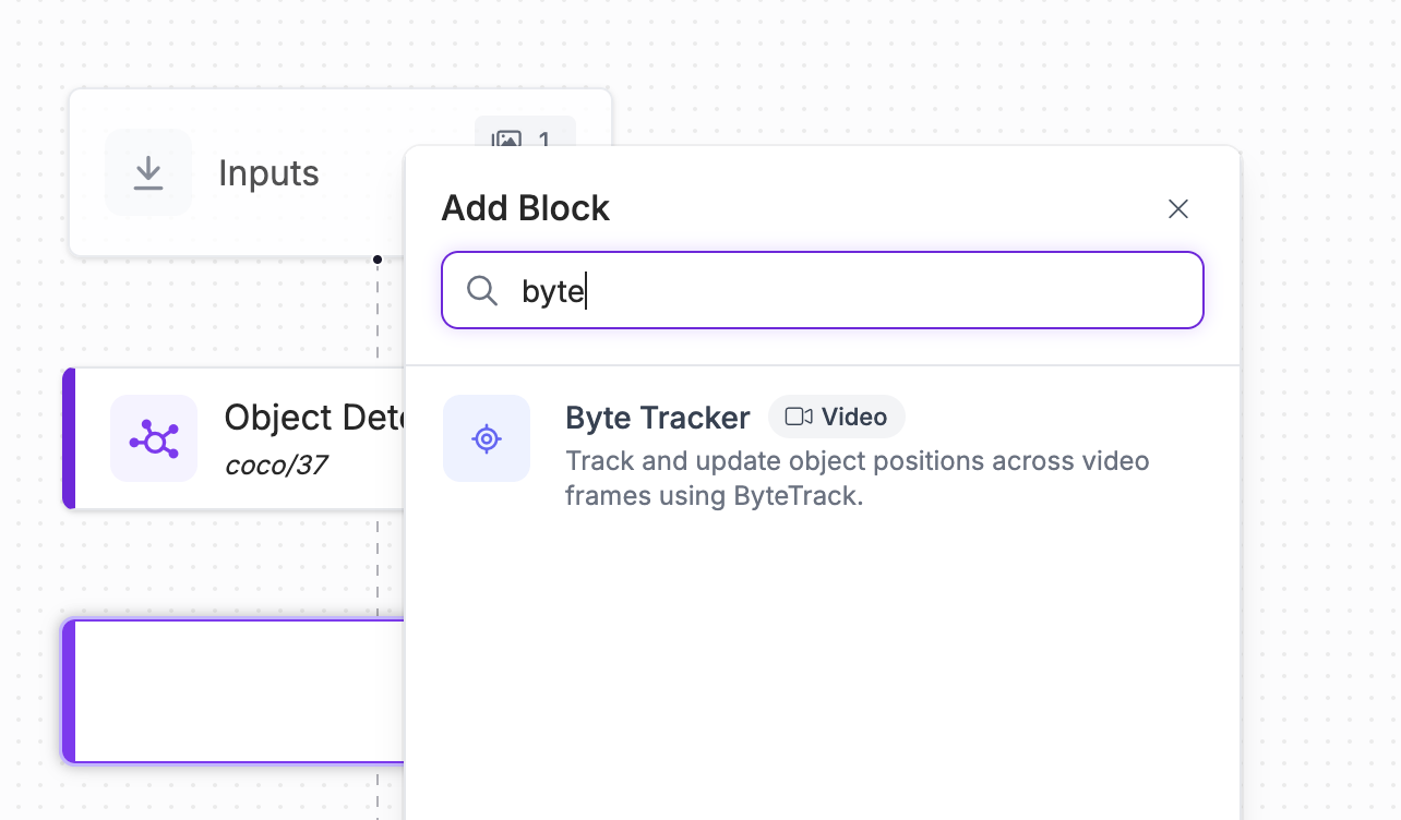 Search for the "Byte Tracker" block and add it to your Workflow: